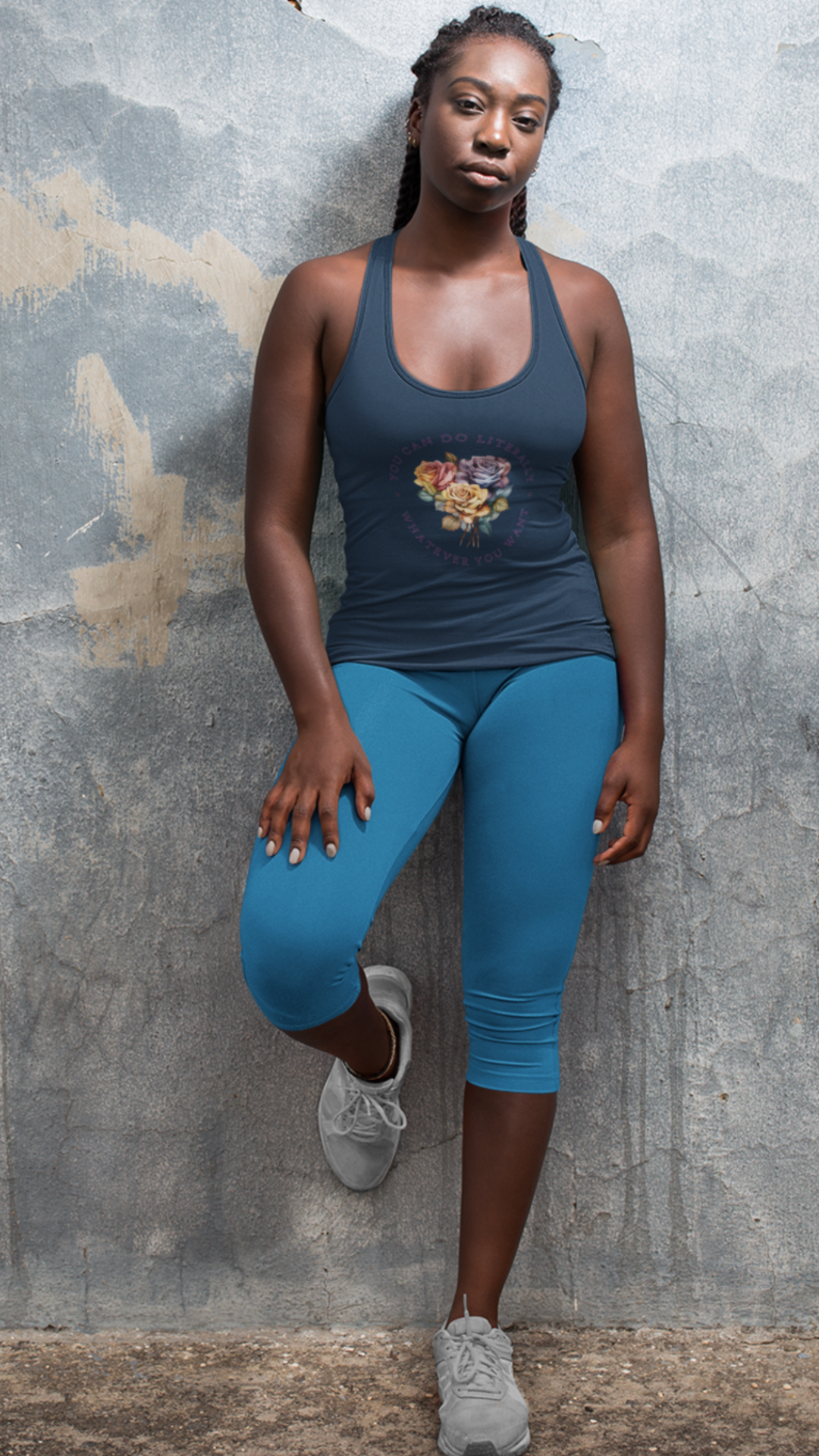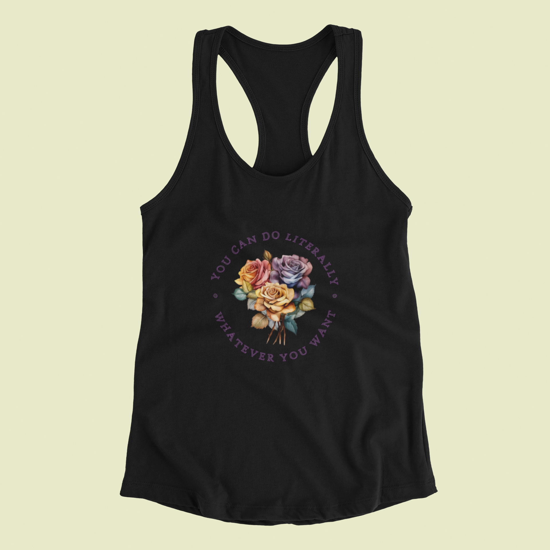 Introducing our Women's Ideal Racerback Tank - Floral Rainbow Literally Do What You Want! This tank features a high-quality print that is sure to turn heads wherever you go. The racerback cut is flattering on any woman's shoulders, making it a versatile addition to your wardrobe. Made with extra light fabric, this tank is crafted from a blend of 60% combed, ring-spun cotton and 40% polyester, weighing just 4 oz/yd² (135 g/m²). Its slim fit and classic design make it a comfortable choice for any activity, while the scooped neckline adds a sporty touch to your outfit. Our racerback tank also comes with a tear-away label for a scratch-free experience, perfect for daily wear. Whether you're hitting the gym or running errands, this tank is a stylish and practical choice. Get yours today at https://croigormllc.com/ and elevate your activewear collection!