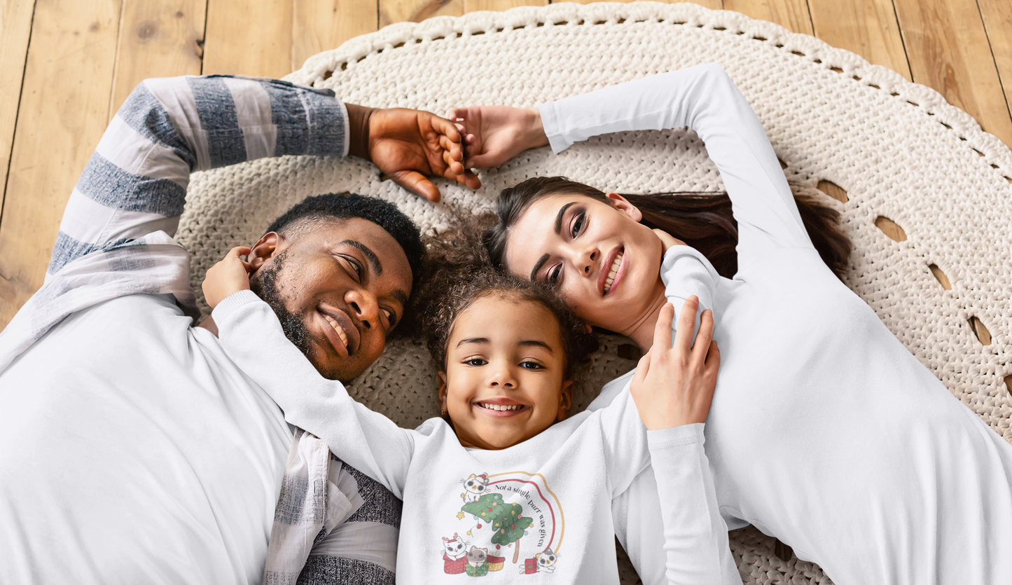 Get your little ones ready to dive into the holiday cheer with our adorable Crazy Christmas Cat Youth Long Sleeve Tee! This playful shirt features a delightful design that perfectly captures the essence of the season while keeping your child's comfort in mind. With the fun inscription "Not a single purr was given," this tee is an entertaining take on the festive season—ideal for kids who prefer to keep things lighthearted. Crafted from high-quality Airlume combed and ring-spun cotton, this shirt promises exceptional softness and durability, keeping your child cozy during all their holiday adventures. The regular fit, classic crew neck, and ribbed cuffs make it a versatile staple for any outfit. Whether they're building snowmen or enjoying a cozy movie night, our tee will ensure they feel at ease all day long. Ethically sourced and made with care in Honduras, Nicaragua, and the US, you can feel good about dressing your child in this delightful shirt. Make this holiday season unforgettable by adding this whimsical Crazy Christmas Cat Youth Long Sleeve Tee to your child's wardrobe. Grab one now and bring a smile to their face every time they wear it!
