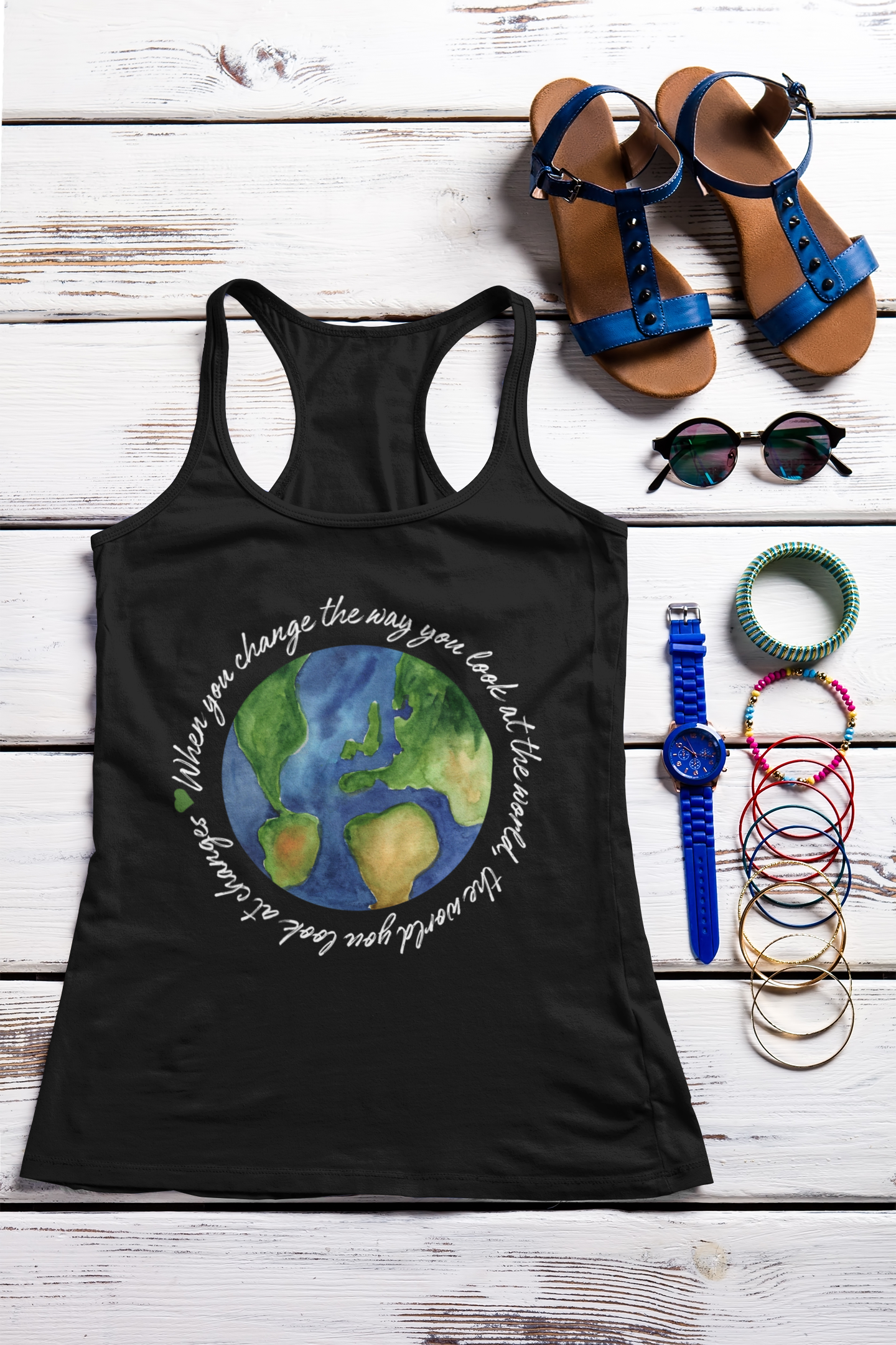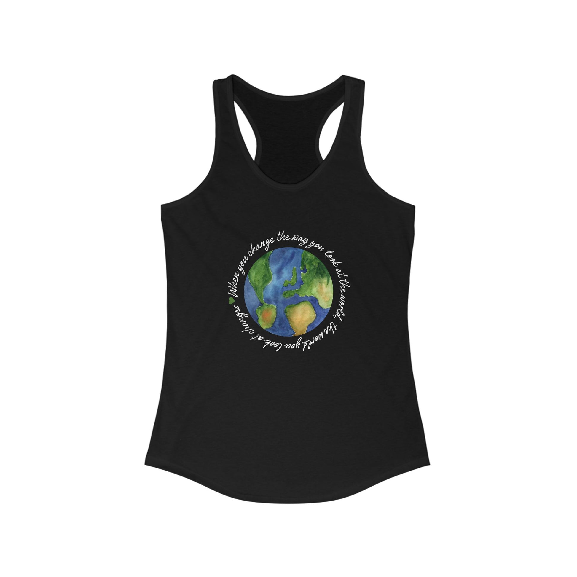 Embrace the earthday vibes with our Women's Ideal Racerback Tank, crafted for the modern woman who is changing the world. This slim-fit tank features a high-quality print and a classic fit, providing both style and comfort. The extra light fabric ensures breathability, making it perfect for daily wear or high-performance activities. With a tear-away label for added convenience, this racerback tank is a must-have for those seeking a scratch-free experience. Order yours today and make a statement!