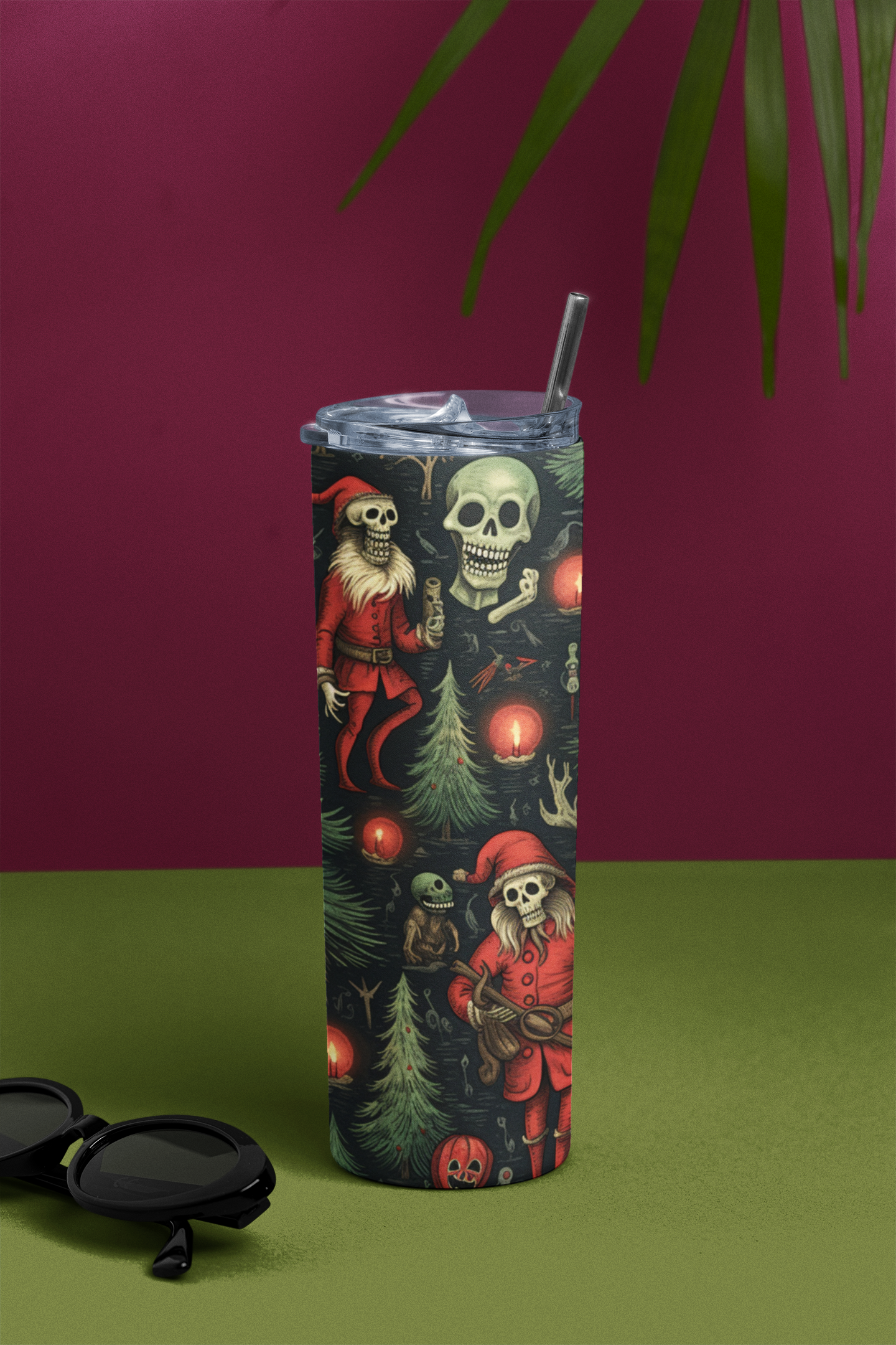Krampus Santa Skeleton Skinny Tumbler with Straw | Stainless Steel | Hot 12h Cold 24h