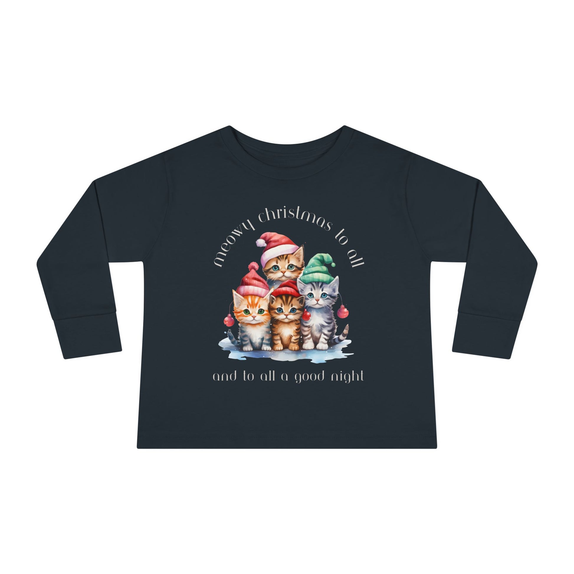 Meowy Christmas to All! Youth Long Sleeve Tee - Holiday Kids Fashion - Cat Christmas Tree Design