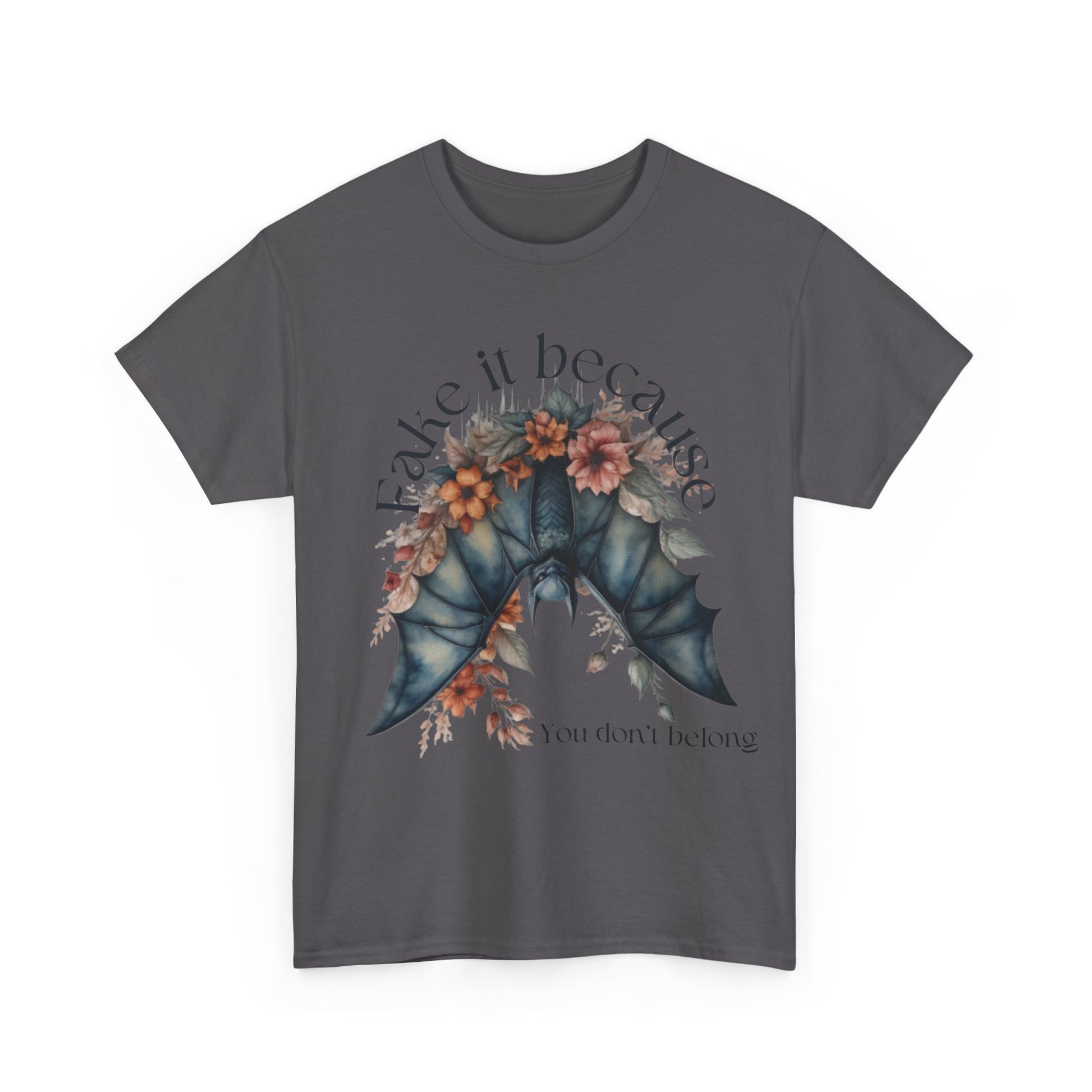 Premium Comfort meets Gothic Style: Fake It Floral Bat Unisex Heavy Cotton Tee
