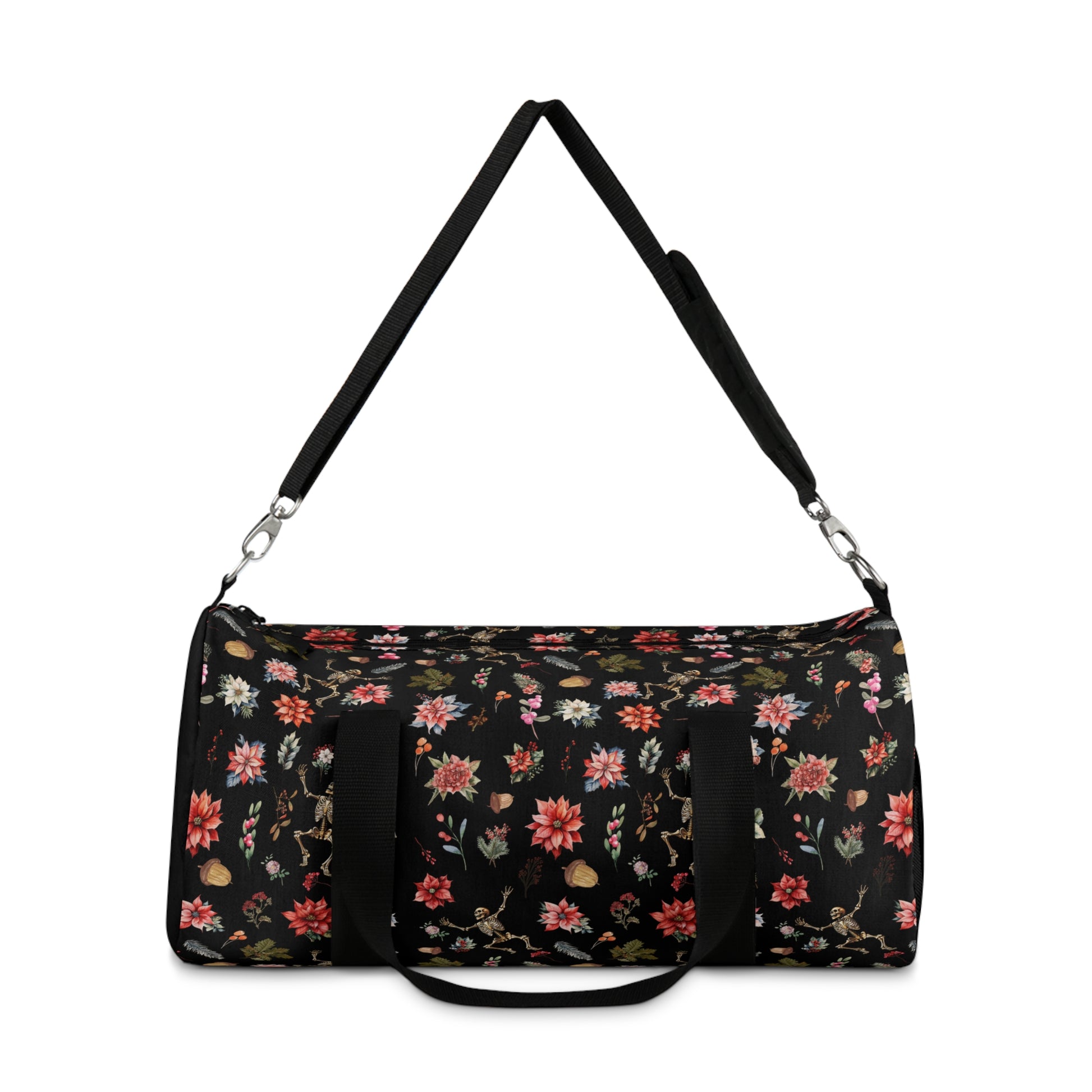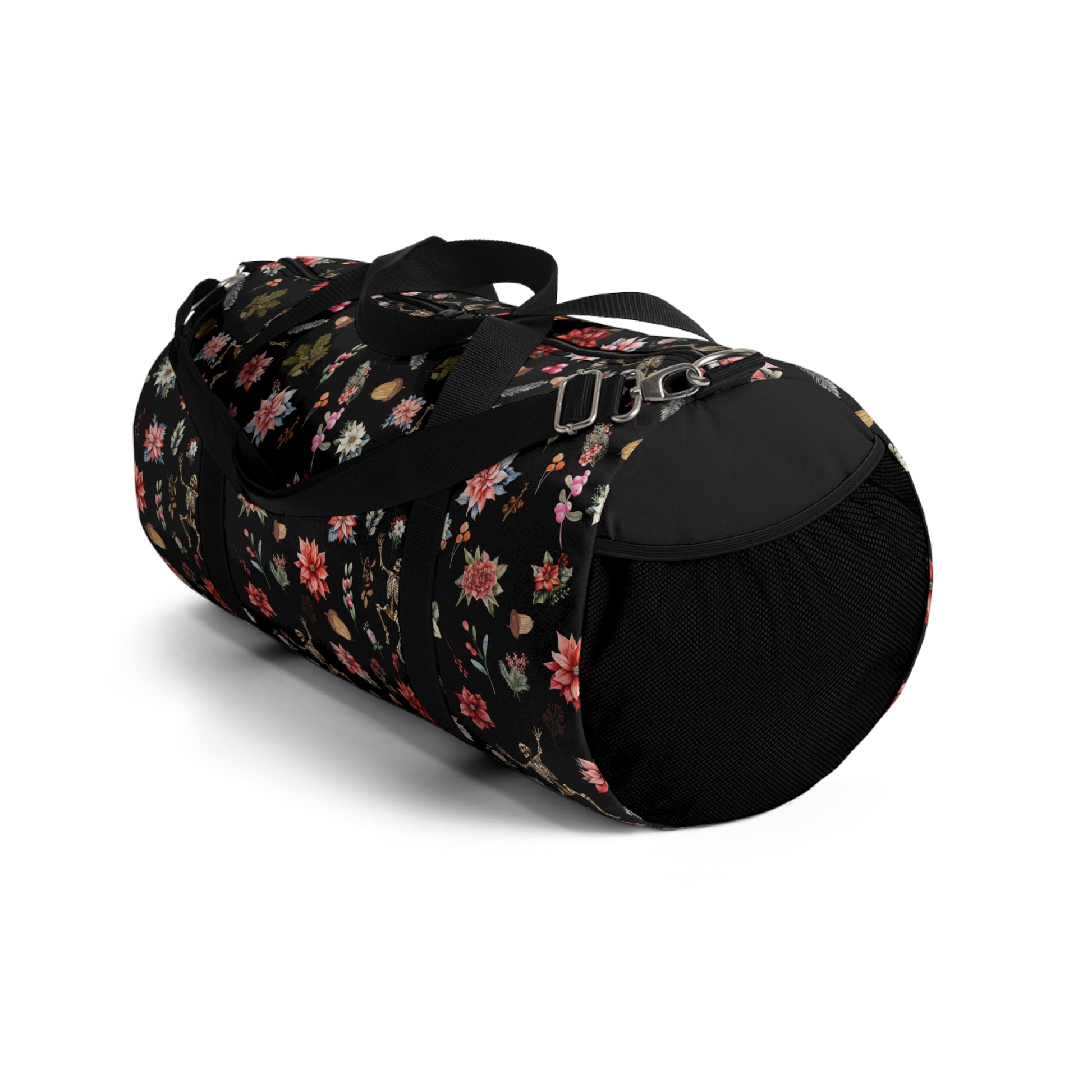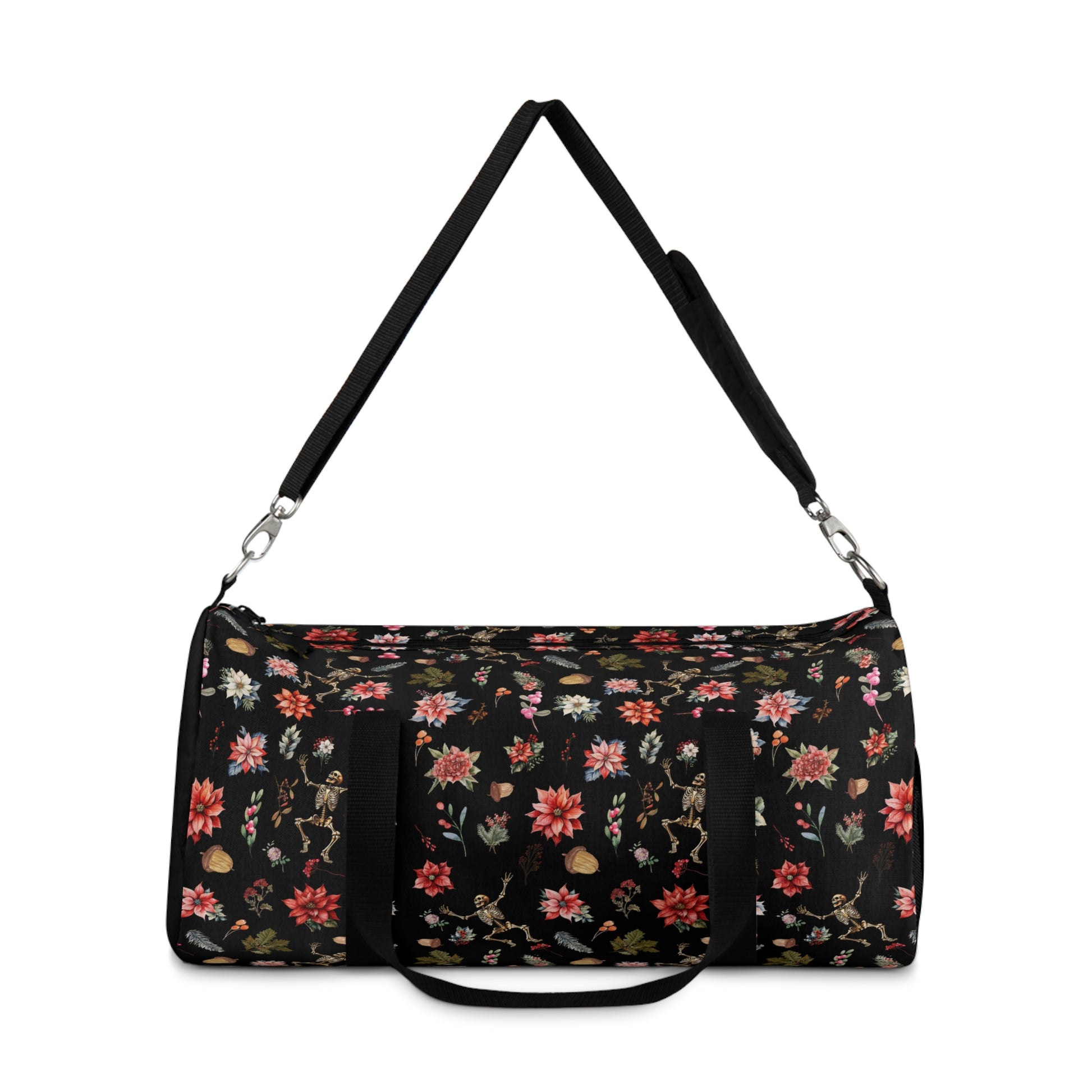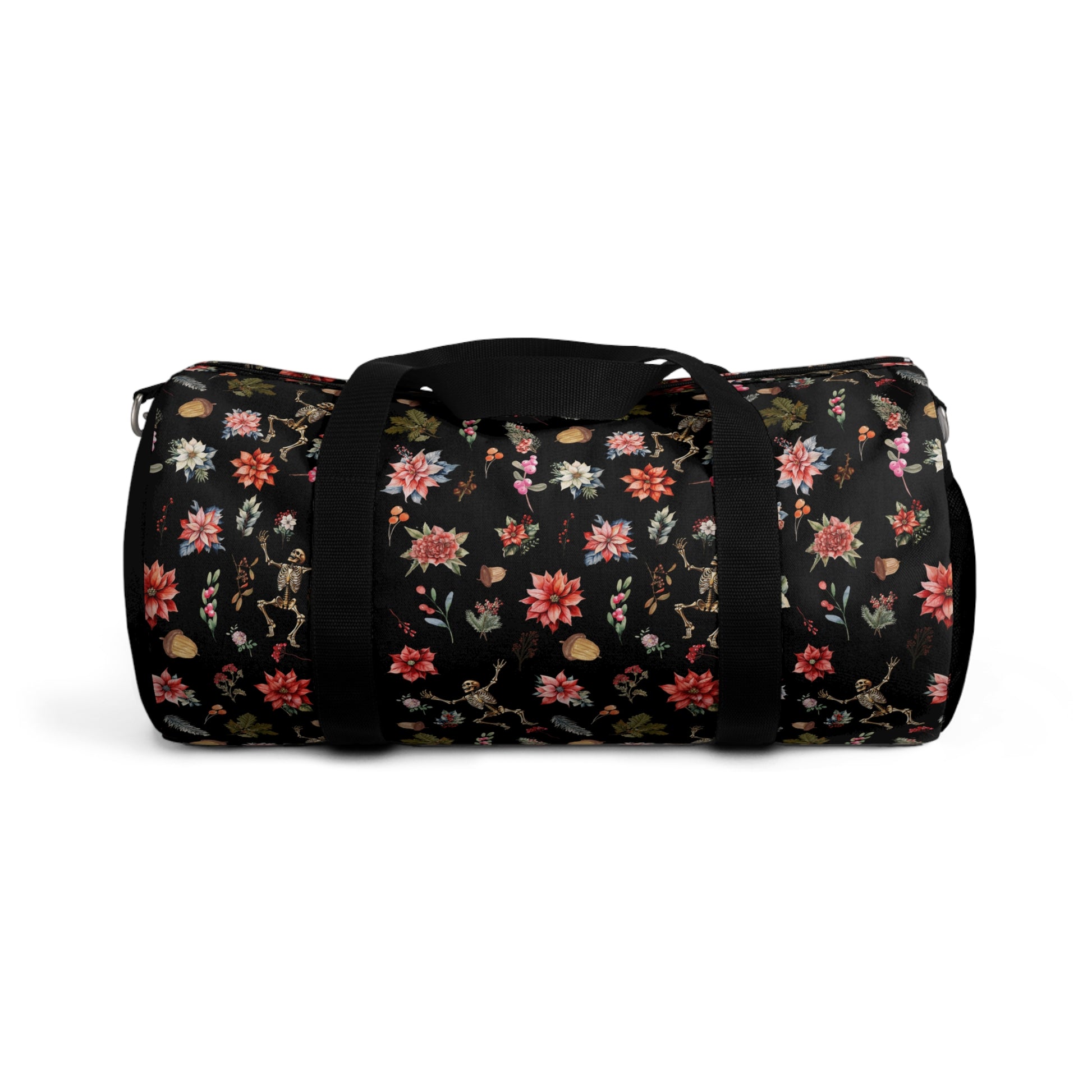 Skeleton and Poinsetta Christmas Duffle Bag - Lightweight Custom Printed Gym Bag for Holiday Cheer