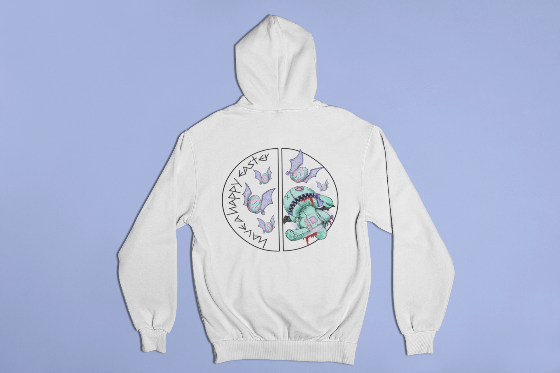 Skeleton Easter Bunny Unisex College Hoodie | Custom Art Sweatshirt | Multiple Colors Available
