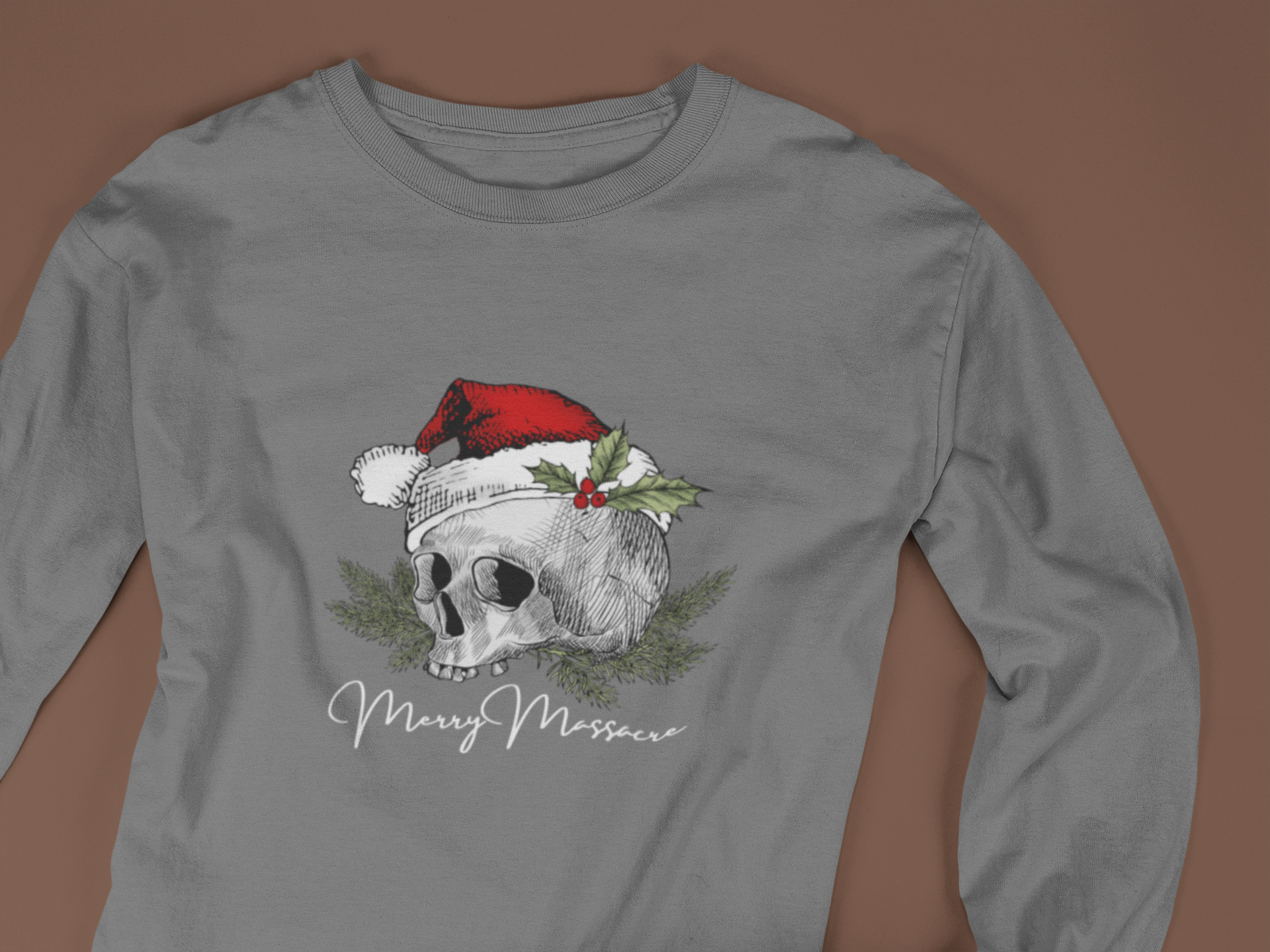 Skull Design Christmas Long Sleeve Tee - Unisex Jersey Tee for Holiday Vibes