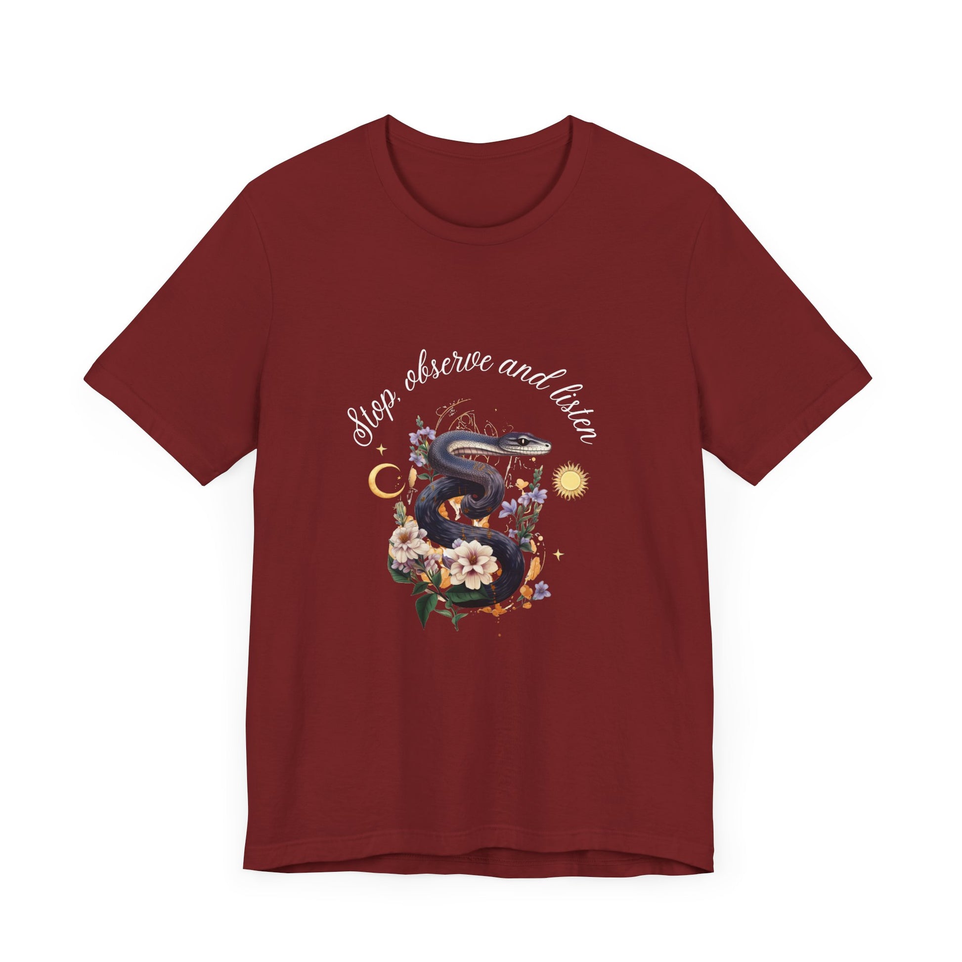 Elevate your style with our Unisex Jersey Short Sleeve Tee featuring a unique snake design. Made with 100% Airlume combed and ring-spun cotton, this tee is lightweight and breathable, perfect for any occasion. With a retail fit and classic crew neckline, this tee is versatile for both casual and semi-formal settings. Manufactured by Bella Canvas in the US, this tee is not only stylish but also sustainable and ethical. Stop, observe, and listen to the call of fashion with this must-have wardrobe staple. Check out our website for more designs: croigormllc.com Stay comfortable and stylish with our Unisex Jersey Short Sleeve Tee showcasing an eye-catching snake design. Crafted from soft cotton and featuring a quality print, this tee is sure to become a favorite in your wardrobe. The ribbed knit collar and tapered shoulders ensure a perfect fit over time, while the dual side seams maintain the garment's shape. Perfect for active or leisure wear, this tee is made with lightweight fabric for easy layering. Choose ethical fashion with Bella Canvas - part of the Fair Labor Association and Platinum WRAP certified. Stop, observe, and listen to your sense of style today! Embrace fashion with our Unisex Jersey Short Sleeve Tee embellished with a striking snake design. This tee combines comfort and style with 100% Airlume combed and ring-spun cotton, ensuring breathability and a snug fit. The retail fit and crew neckline offer a classic look that's ideal for accessorizing in any setting. Manufactured by Bella Canvas in a humane and sustainable manner, this tee is a conscious choice for your wardrobe. With various fabric blends available, including ash, heather, and solid colors, you can find the perfect tee to suit your style. Stop, observe, and listen to the allure of quality fashion at croigormllc.com.